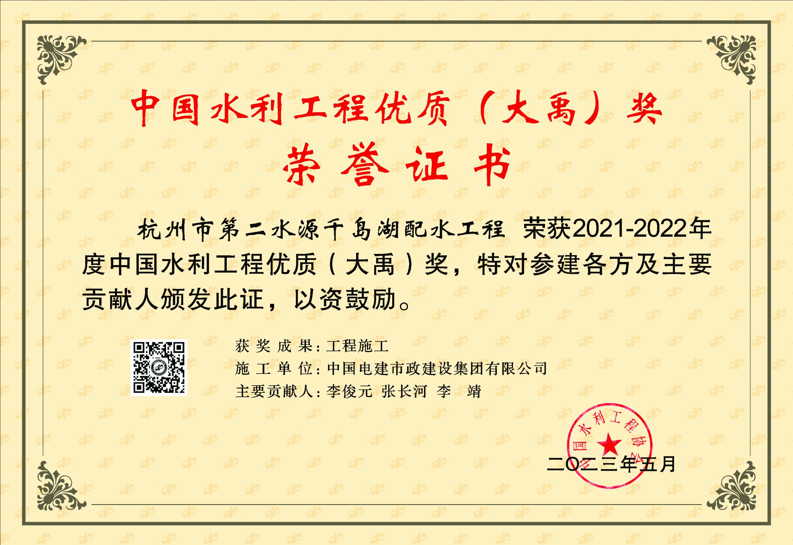 大禹獎-浙江杭州第二水源千島湖配水工程